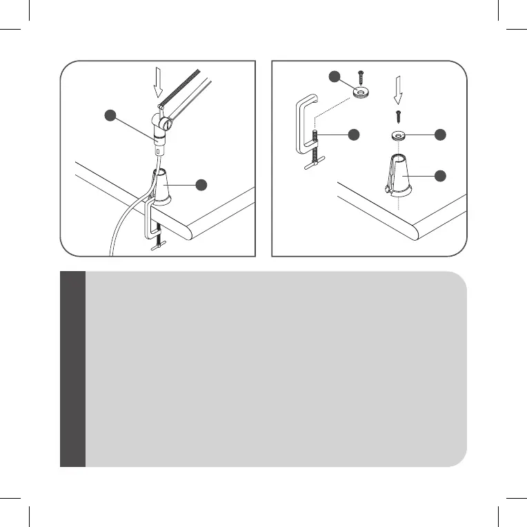 surface: unscrew the bush (H) from the structure of the clamp (I). Attach the bush (H) to the bottom of the