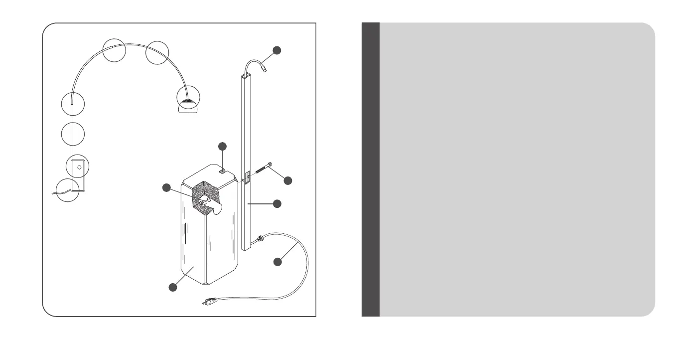 raccord (E) dans le trou de la base (F); fixer la tige (B) à la base (F) avec la vis (G) en faisant attention de ne pas