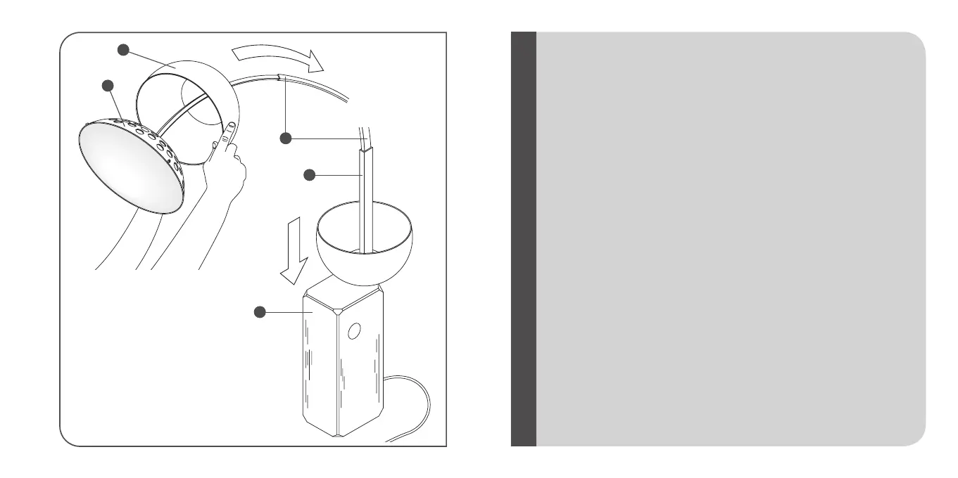 < J > 図9. ランプシェードの清掃作業 ー リフレクター(L)を伝達経路(H)と軸板(B)に沿ってスライ