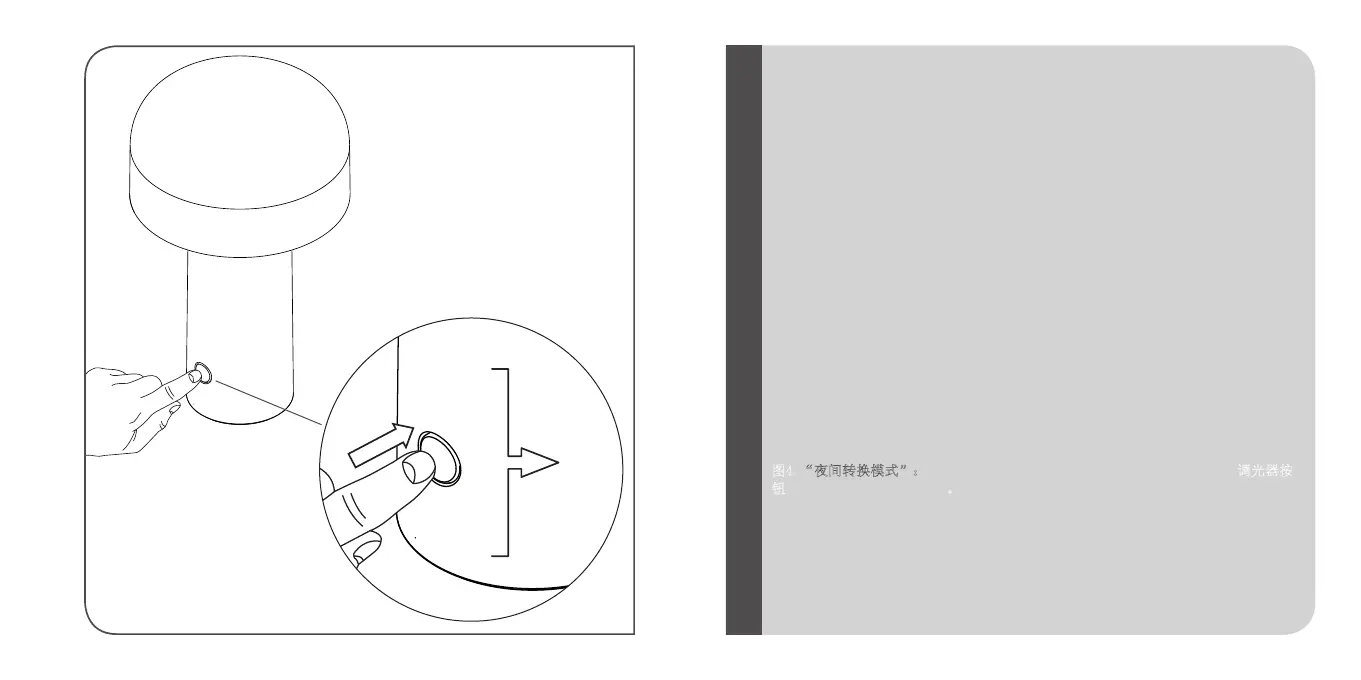 图4.“夜间转换模式”:无论装置处于开启或关闭的状态,用手指持续按压调光器按