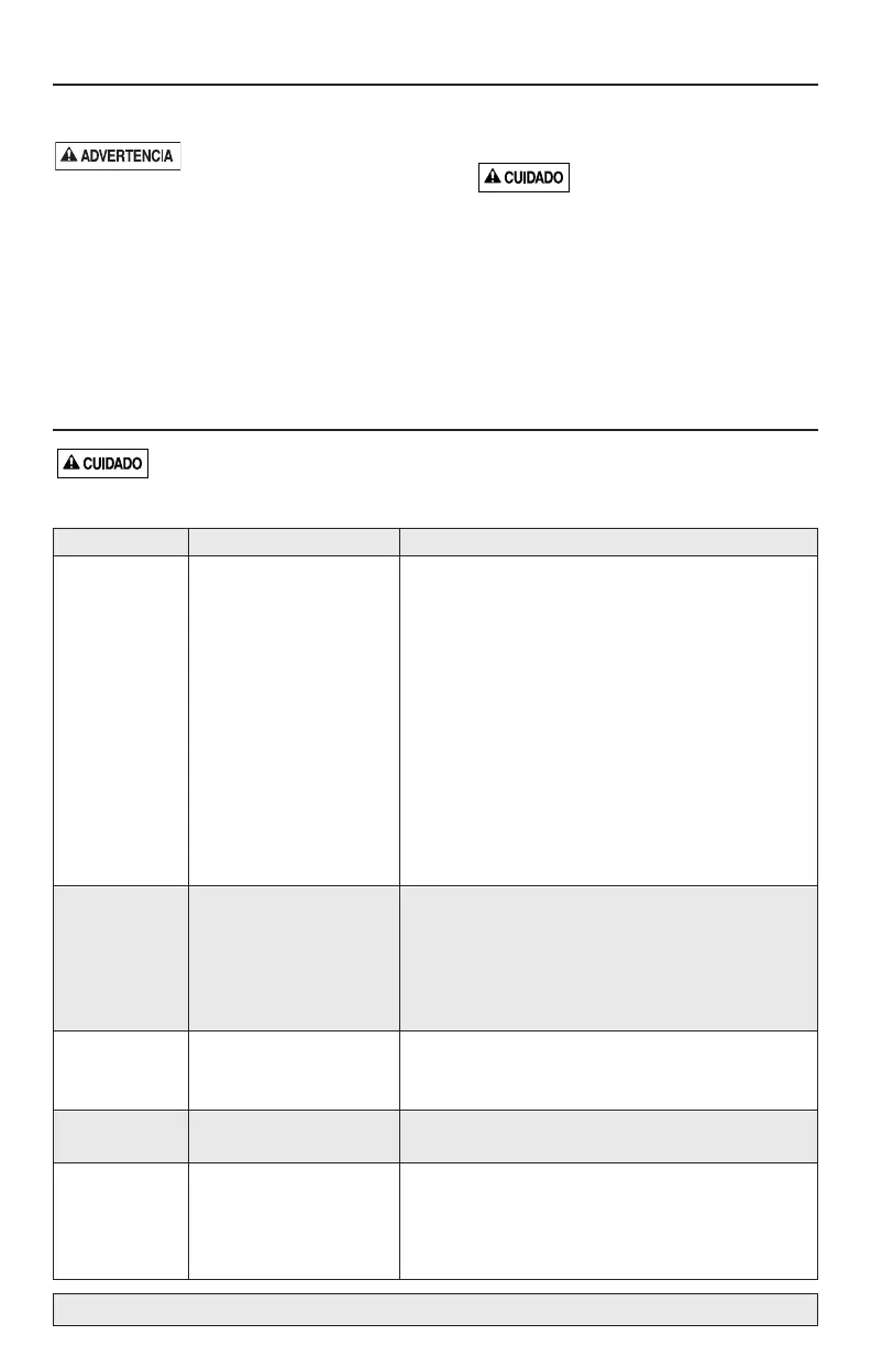 El motor No hay electricidad Inspeccione el fusible, el interruptor de circuito, el