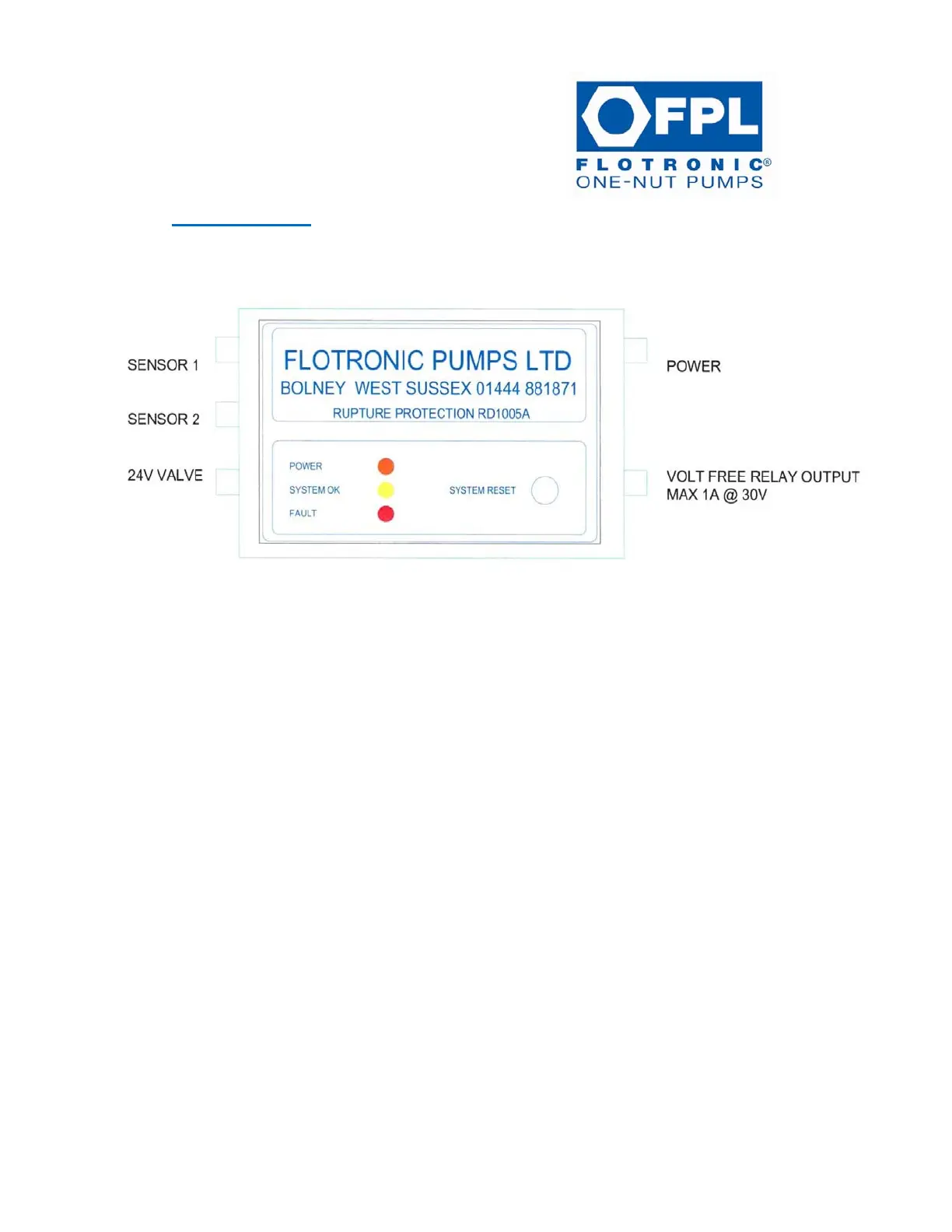 The main unit is fitted sockets for the connection of the two sensors and solenoid