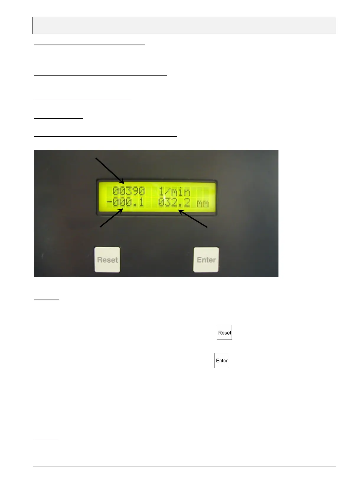display of actual value (l.h.) and desired value (r.h.) Start motor and adjust spindle speed.