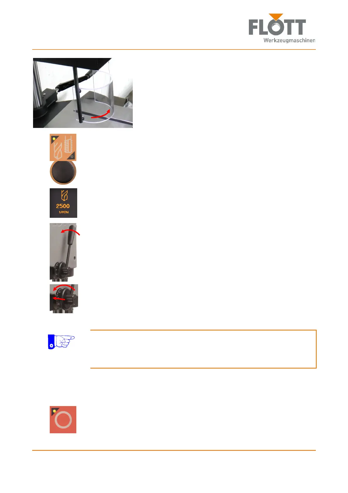 7. Use the drill lever to slowly move the drill bit towards the workpiece by
