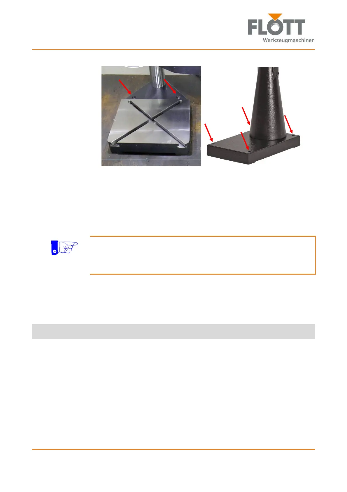 10. Tighten the screws only hand-tight so that the machine base is not distort-