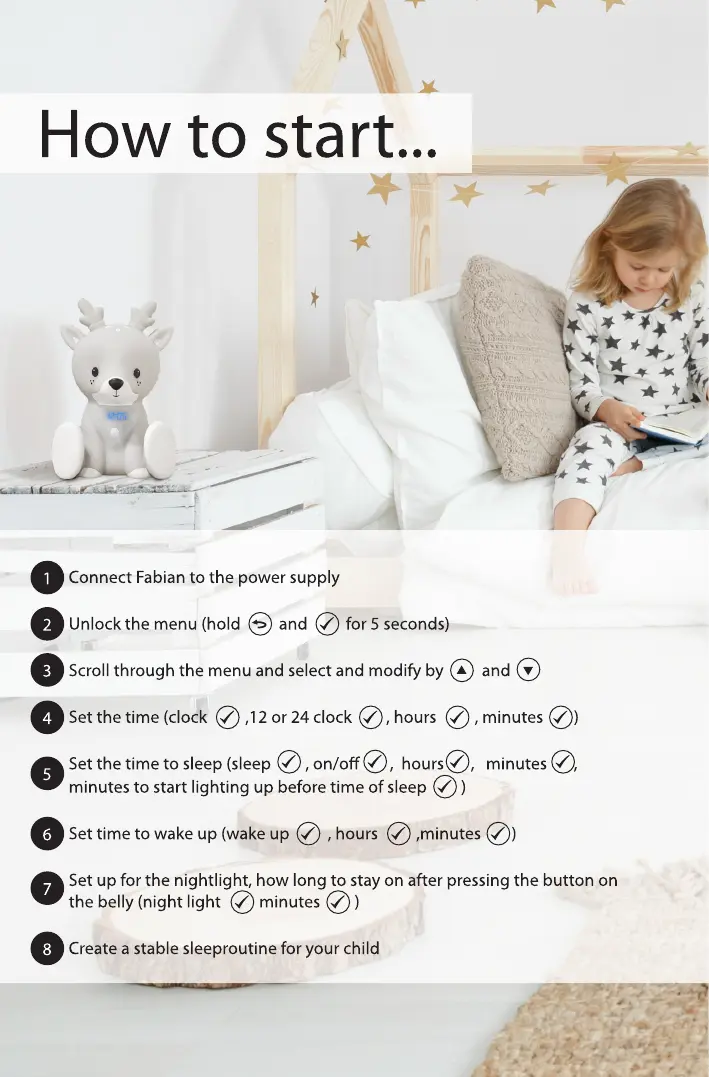 Flow Amsterdam Fabian - Getting Started Guide; Connect and Unlock Fabian; Navigate and Set Time; Configure Sleep and Wake Times