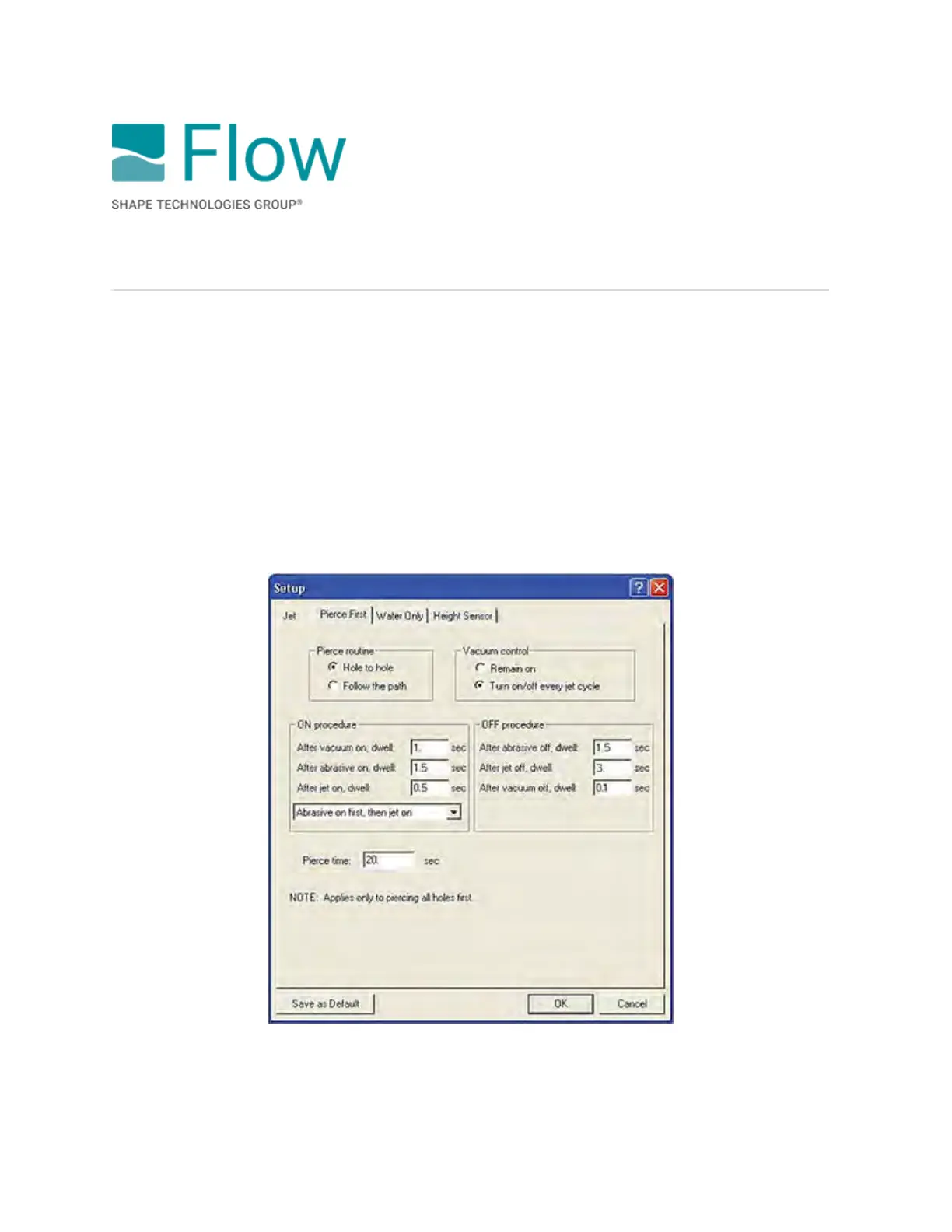 1. Go to Setup > Jet. In the dialog box, select Pierce First.