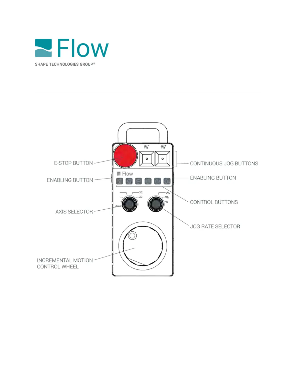 The remote pendant allows you to move the axes independently, set user home, and control the water