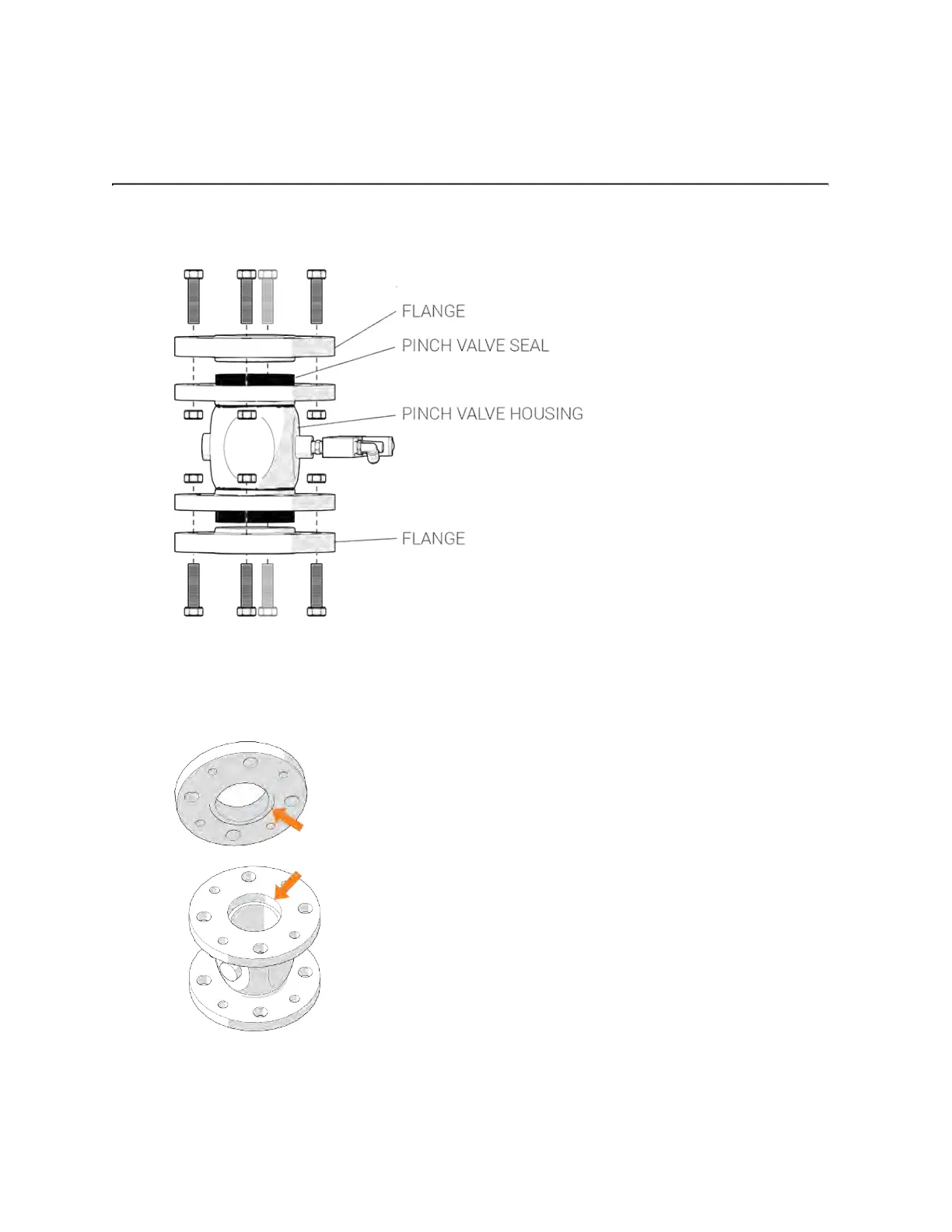 3. Examine the tapered surfaces on the pinch valve flanges and housing. Tapered surfaces
