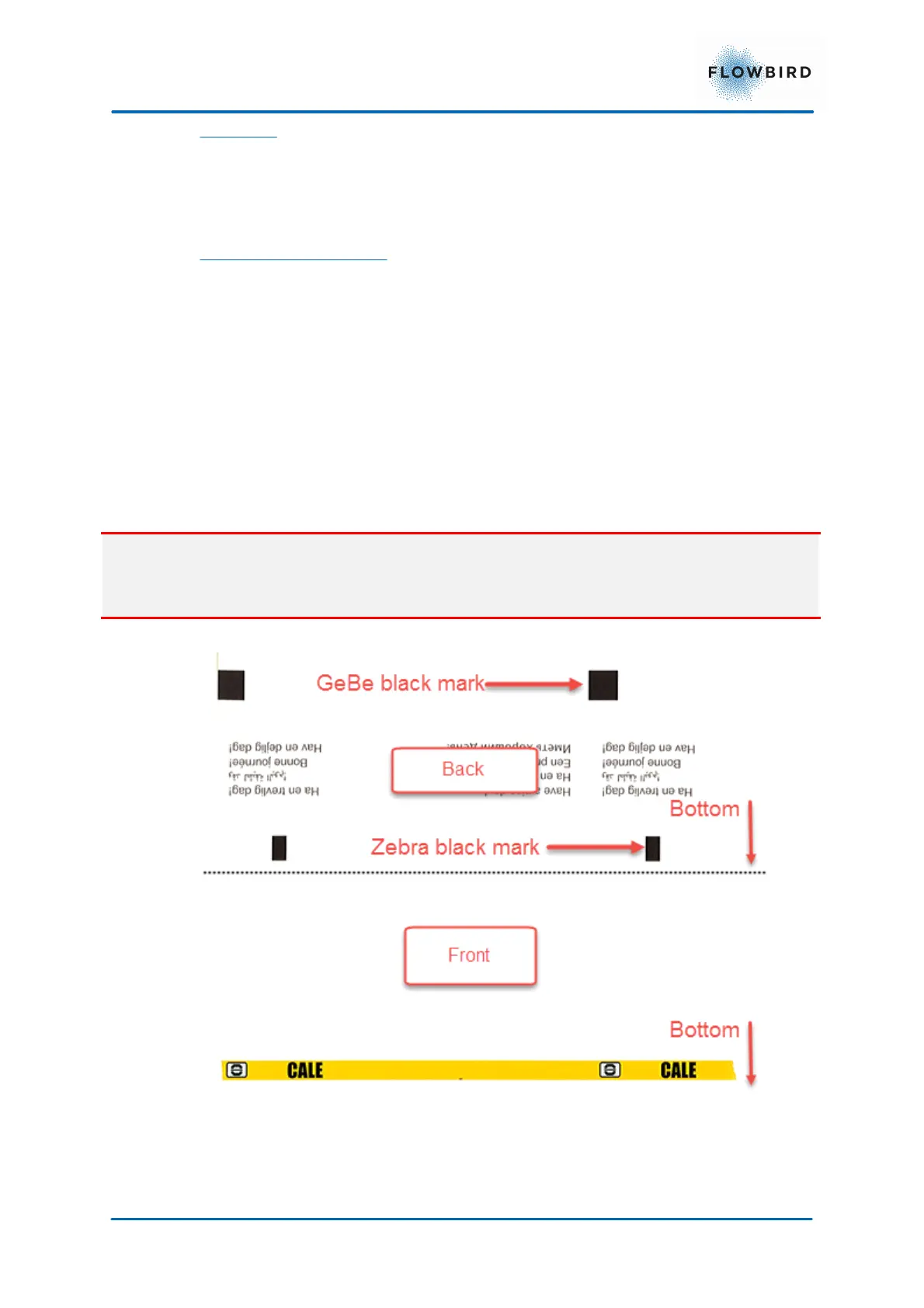 The GeBe printer uses a different location for the black mark the Zebra printer in