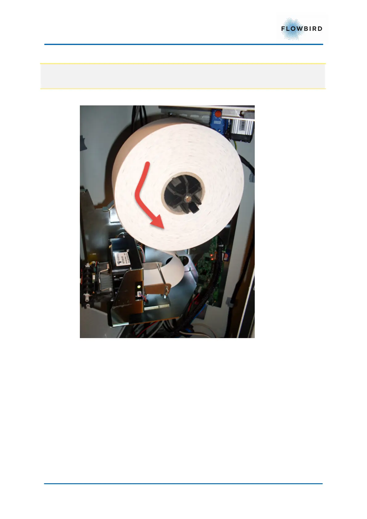 Figure 42, Paper roll mounted on a version 2 printer shelf
