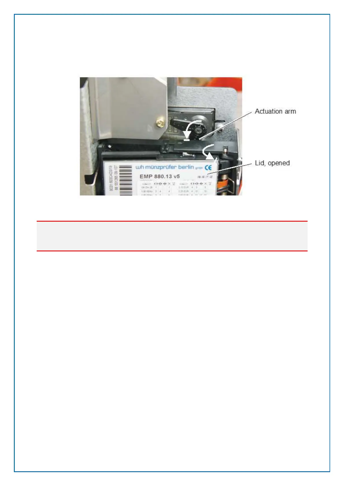arm which actuates a lever on top of the coin verifier. This lever opens the lid