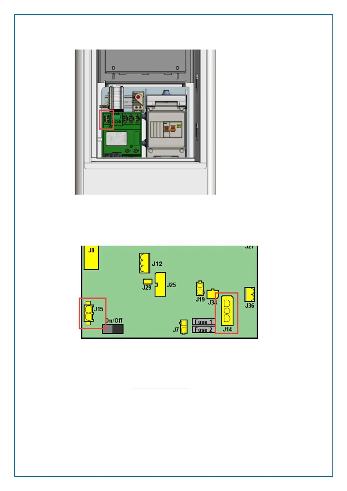 Connect the 12 V supply cable from connectors J5 and J14 on the CPU board to