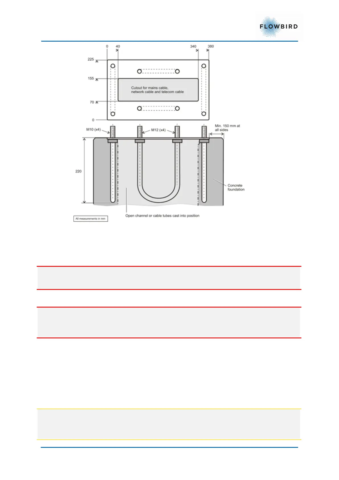 If the terminal should be connected to the grid power supply, a duct must be cast