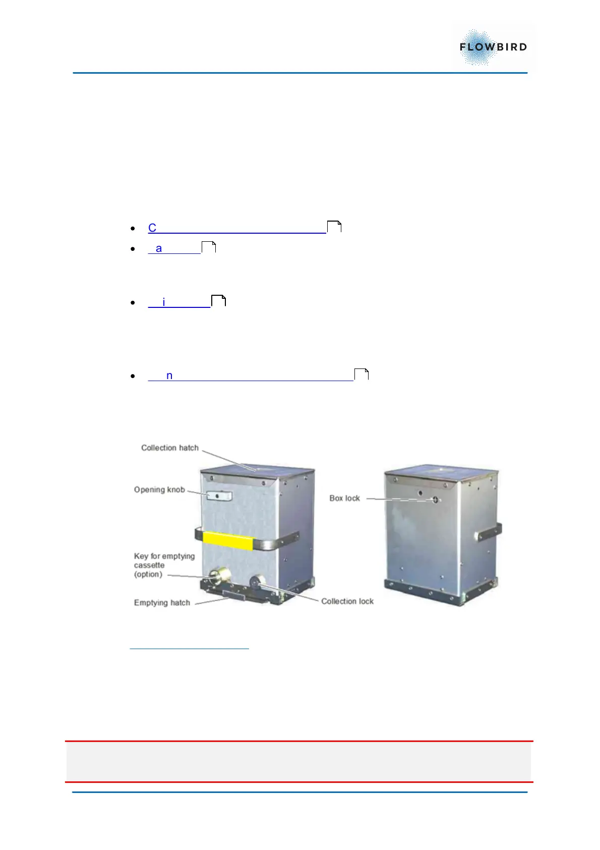 collection hatch and releases a catch that holds the box in position in the