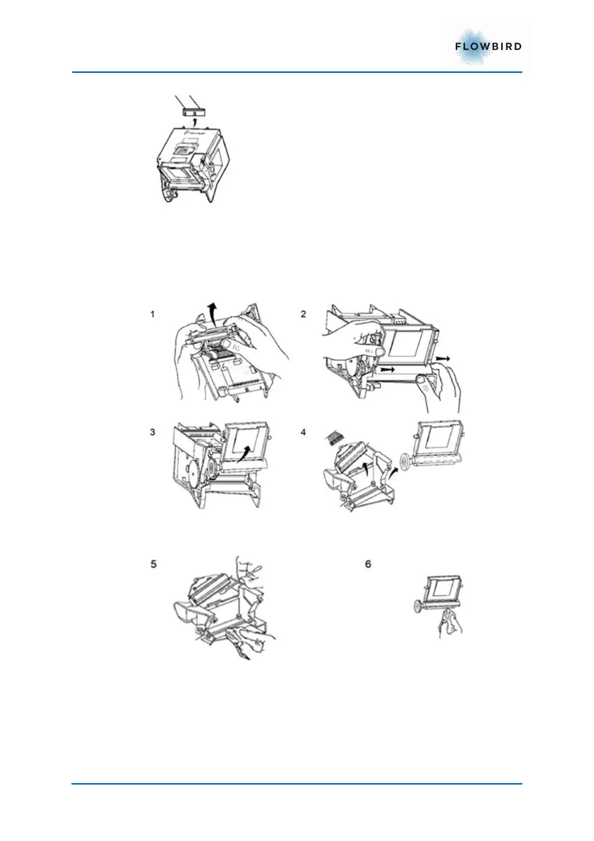 6. Remove the paper guide and lift the thermal print head to take it out (4)