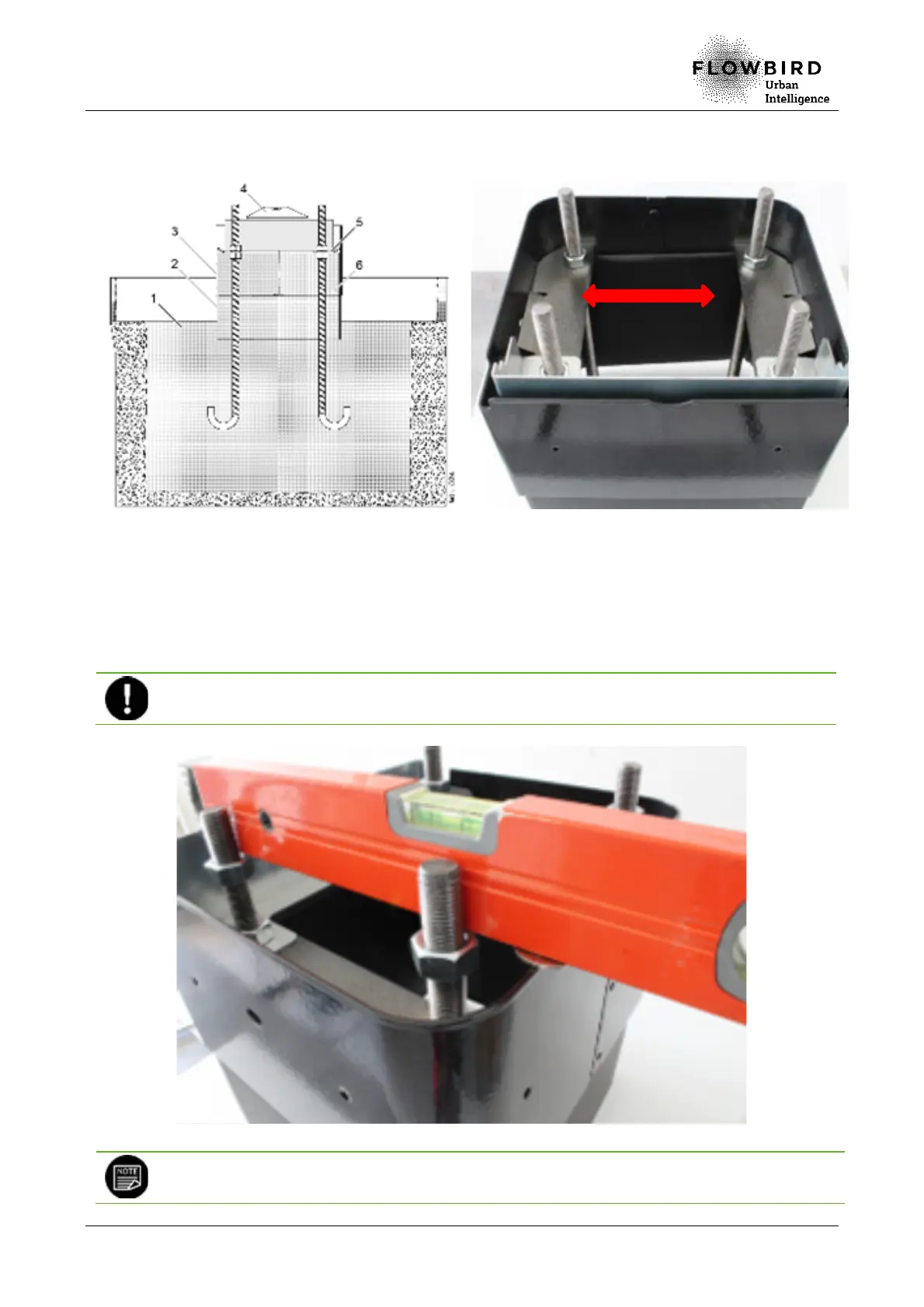 aligned with the base top and check the horizontal alignment with a spirit level (3).