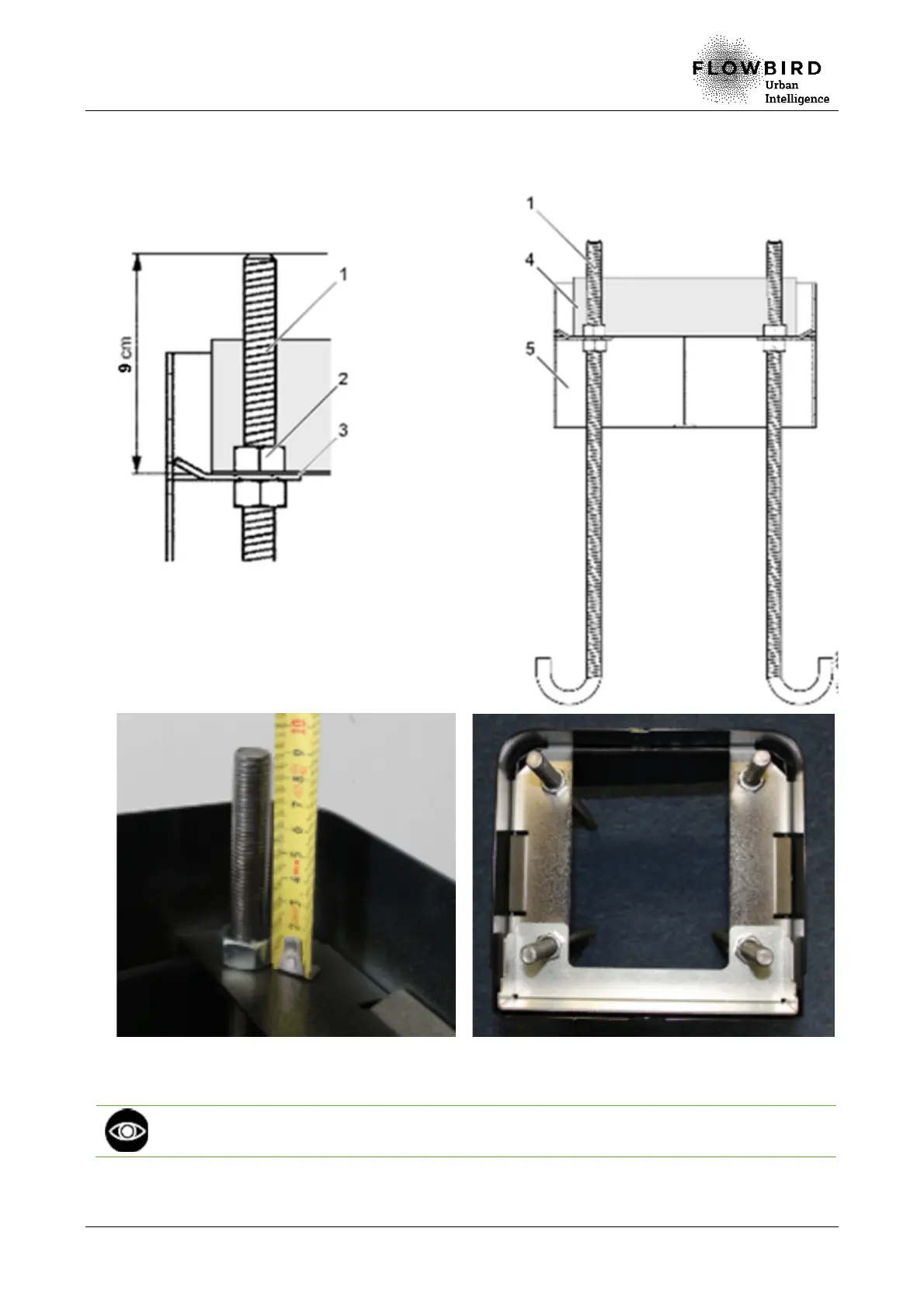 and fix the rods with 4 M16 nuts (2) so that the ends of the rods are 9 cm +/-1 away