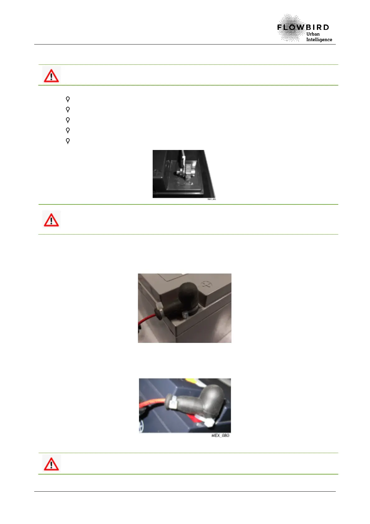 F. Put a third tie at the base of the red terminal protection of the 42 Ah battery (as