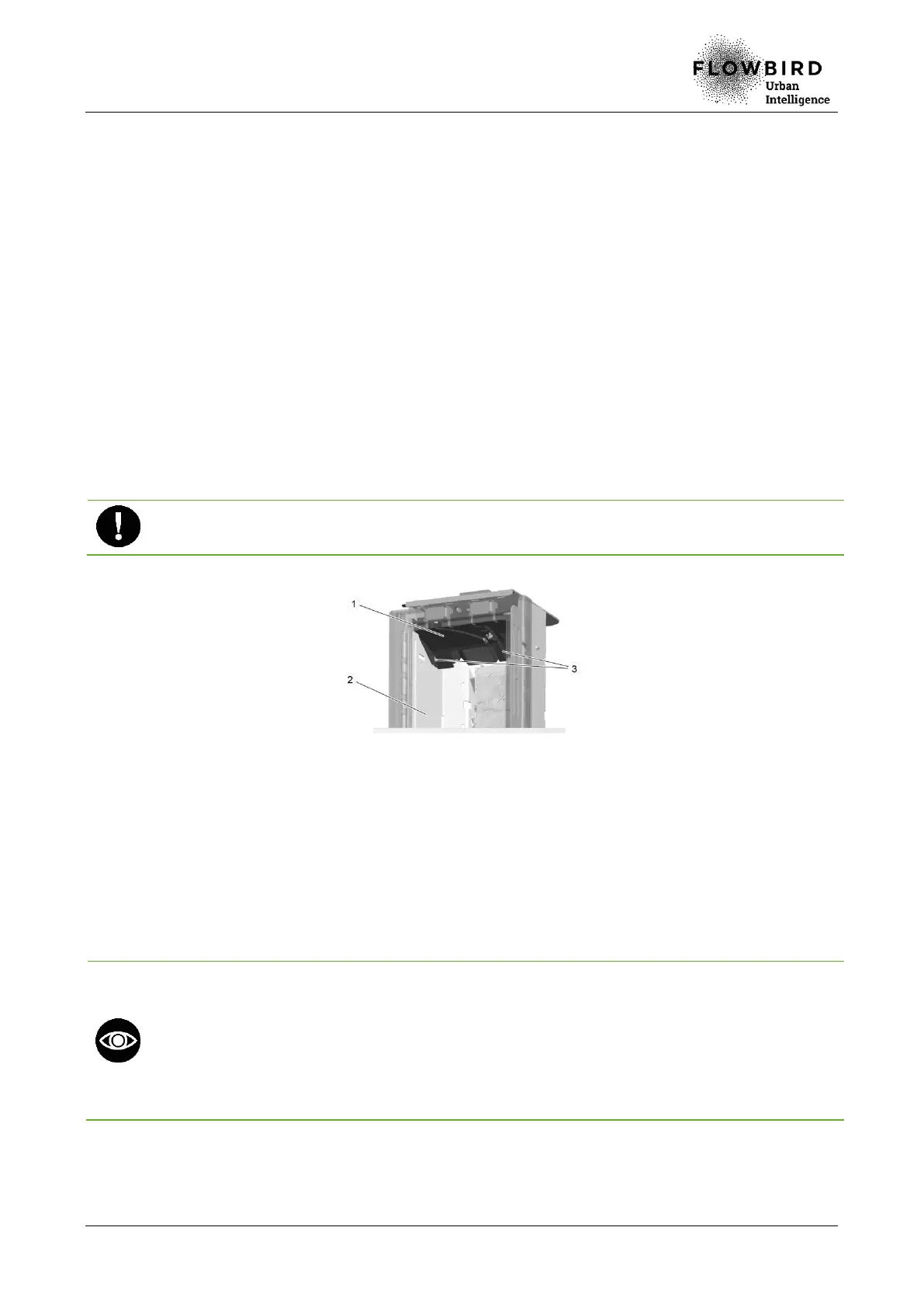 B. Loosen the 2 screws (3) that hold the equipped reception (1) to the collection rack