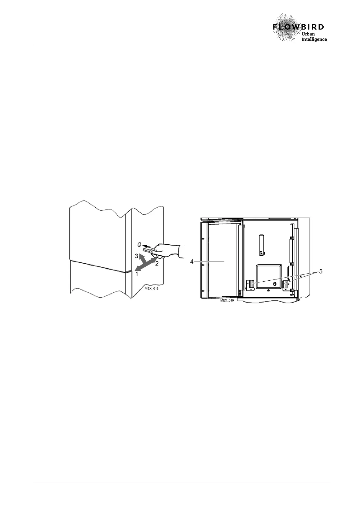 B. With the tip of the key, push the first flap to the left (1) and the second flap to the