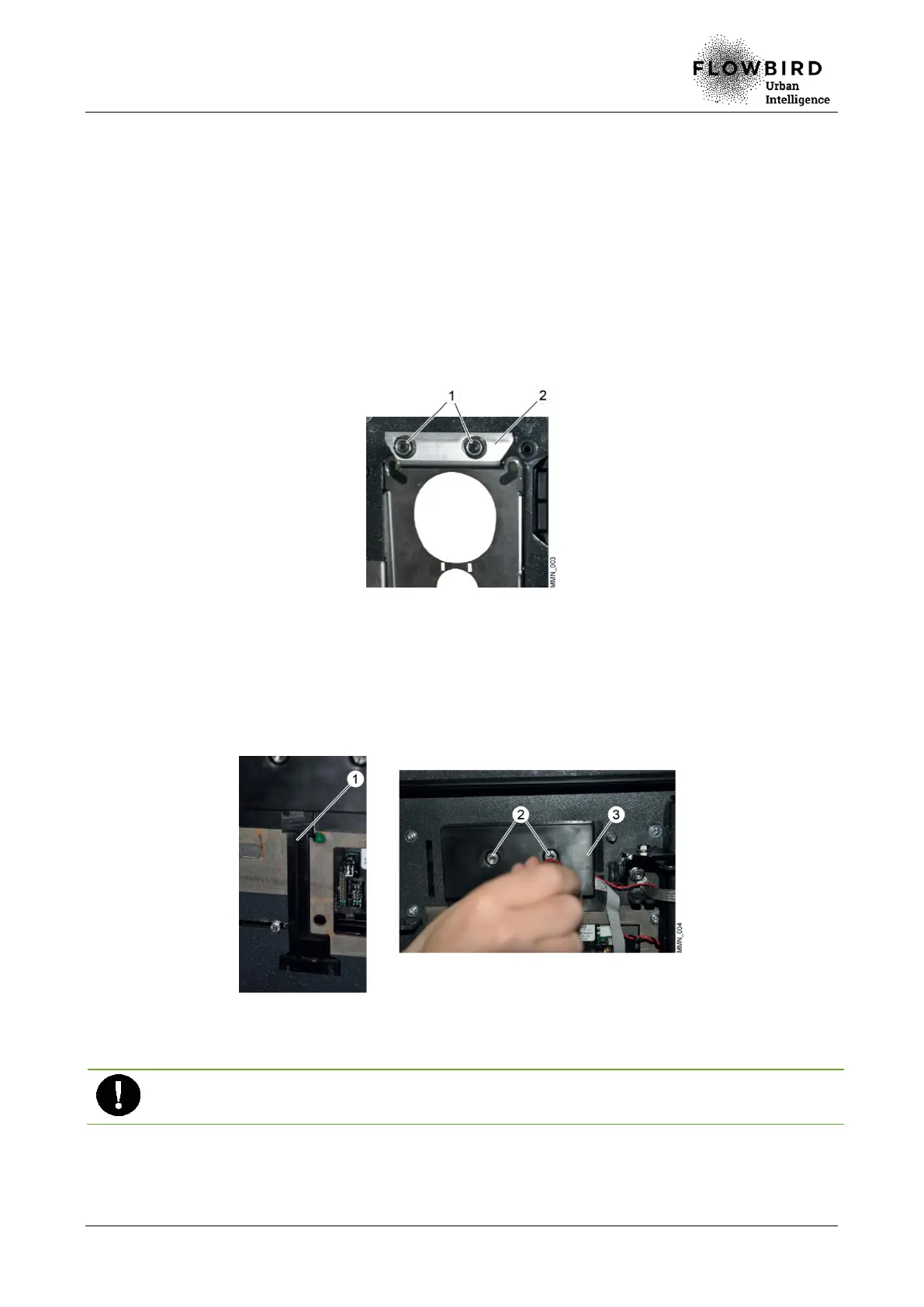 b. Loosen the 2 nuts (2) on the protective cover (3)