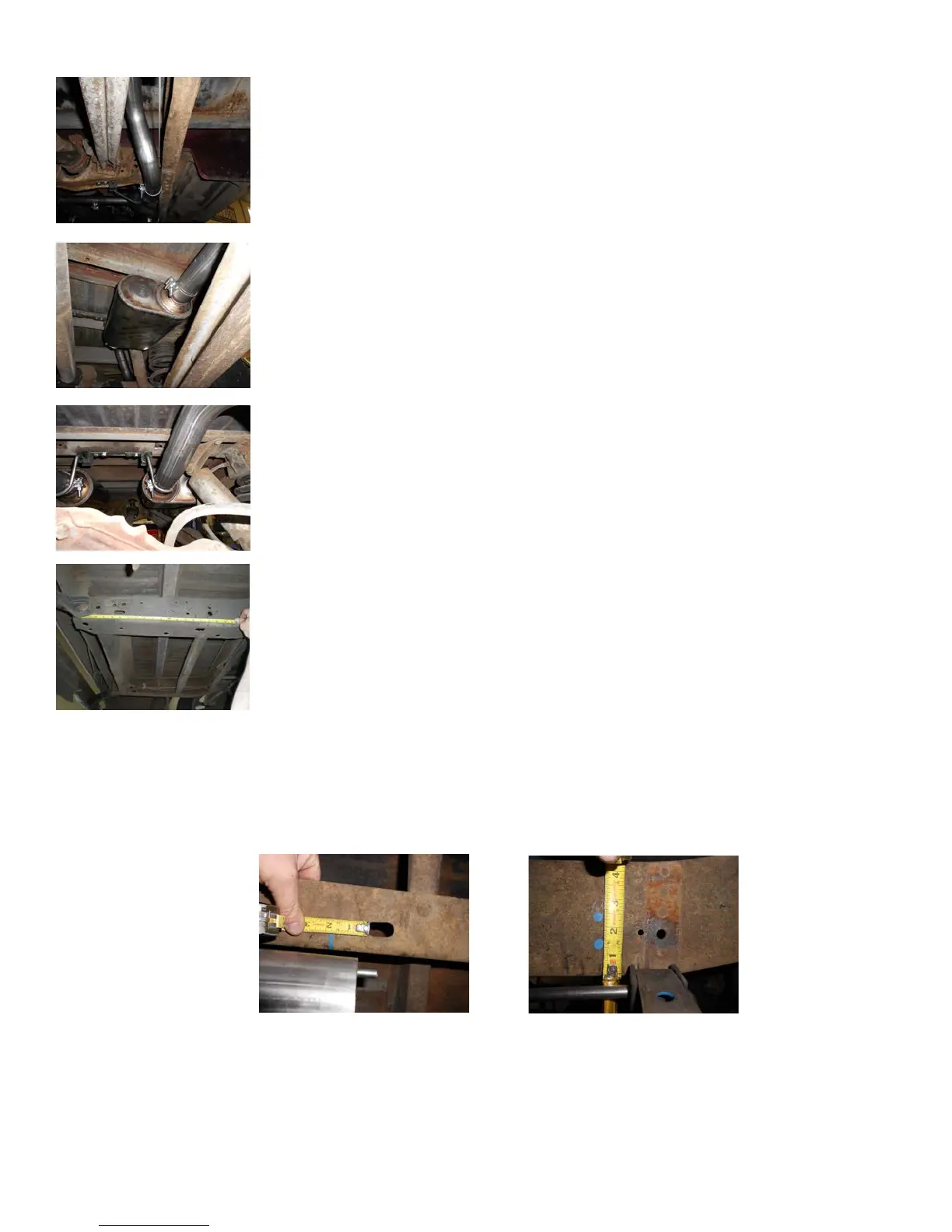 7) To mount the rear tailpipe hangers on short bed trucks, measure forward