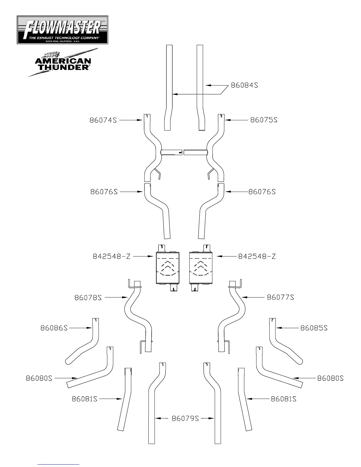Flowmaster American Thunder - Exhaust System Installation Diagram