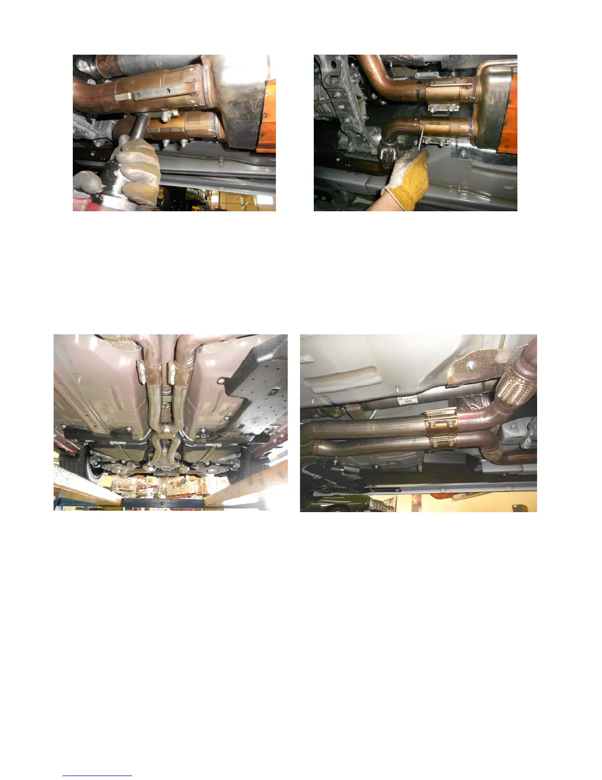 factory downpipes while supporting the rear of the assembly with a stand. Slide the clamps back to