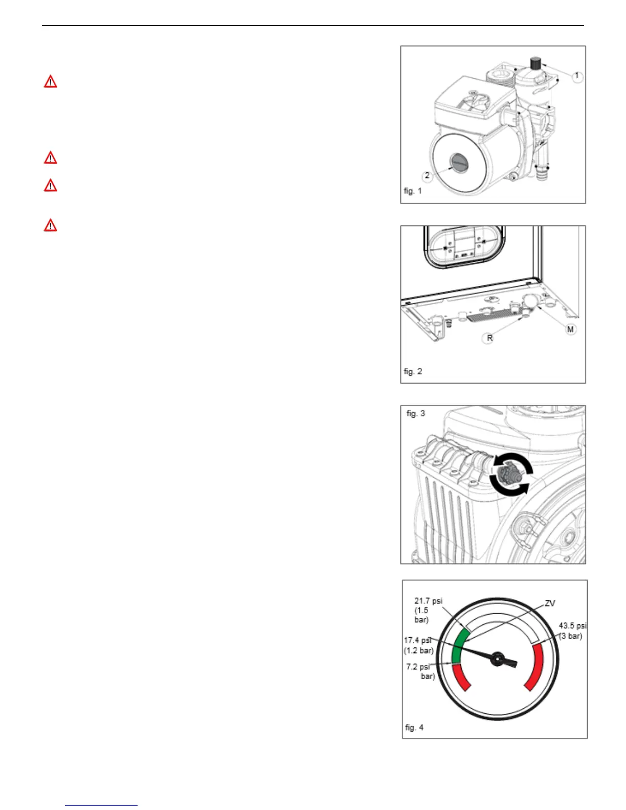 • Use the pressure gauge M (fig. 2), to check that the systems