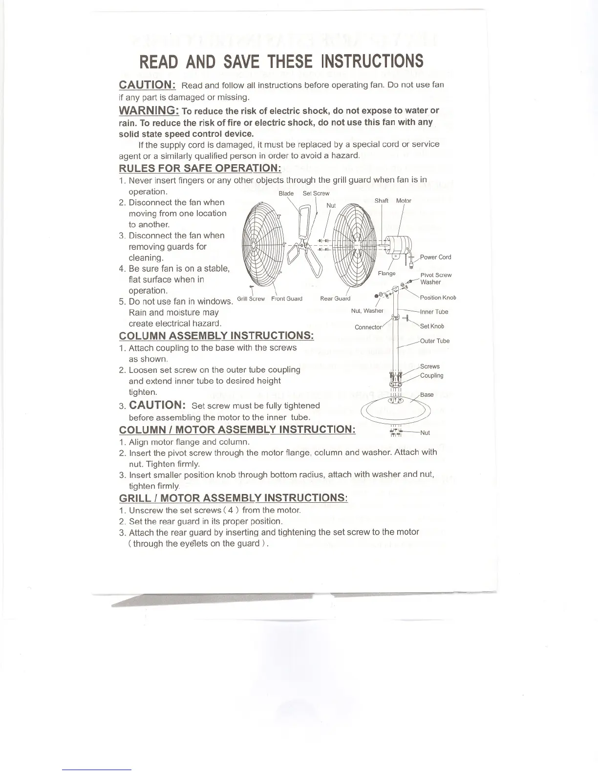 Flowpro 10301 - Safety and Operation Guidelines; General Safety Precautions; Rules for Safe Operation; Assembly Instructions