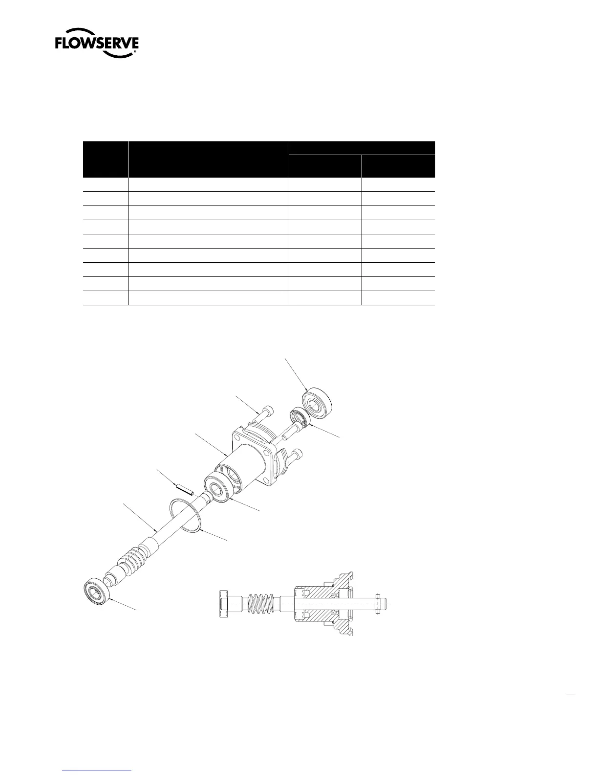 Table 4.17 – Worm Shaft Parts List