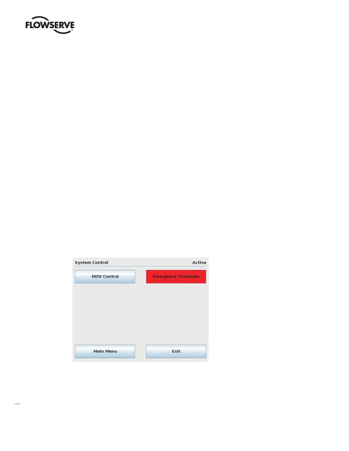 The System Control screen allows for the selection of either MOV Control or Emergency Shutdown, over the network.