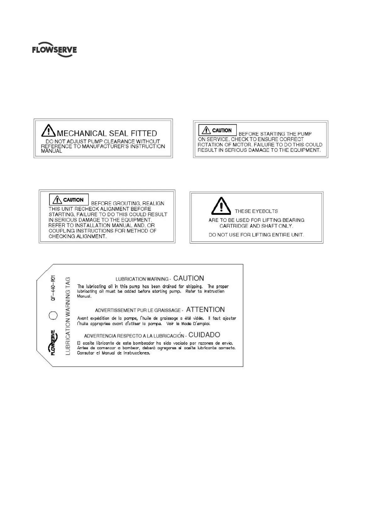 MECHANICAL SEAL WARNING ROTATION WARNING