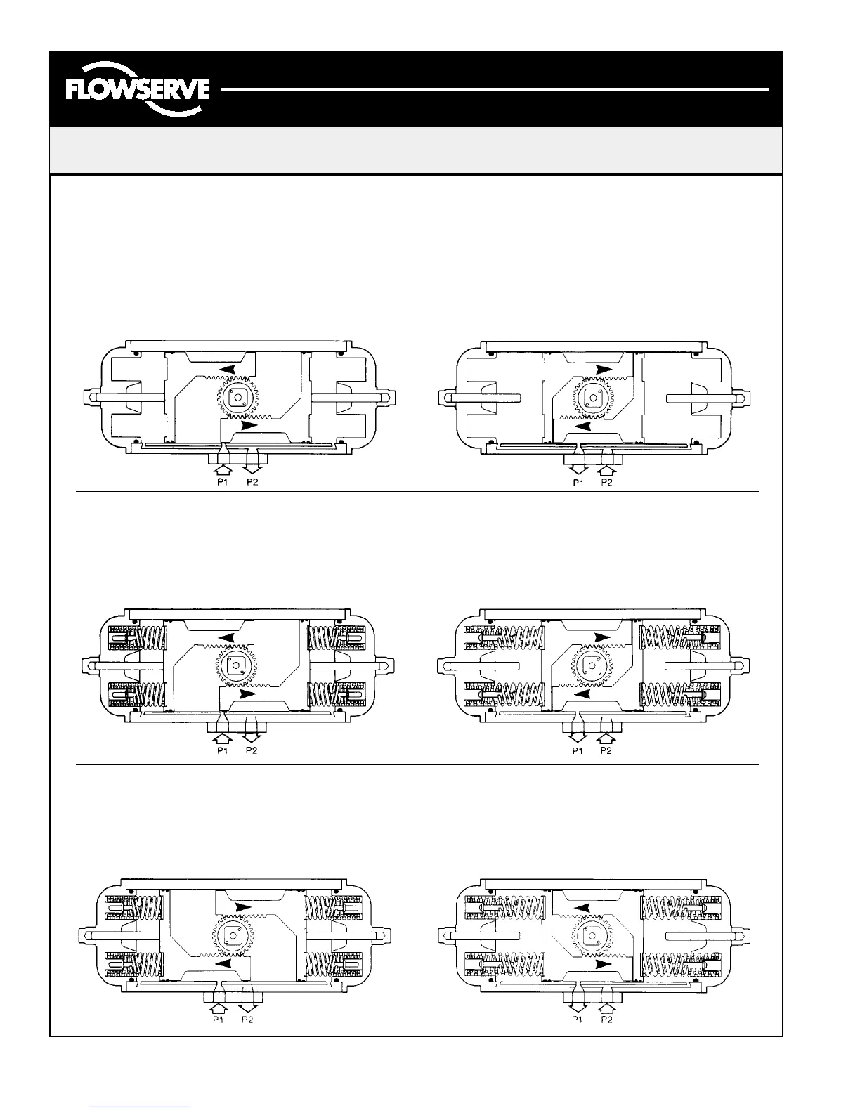 Applying air pressure to Port 1 drives the pistons Applying air pressure to Port 2 drives the pistons