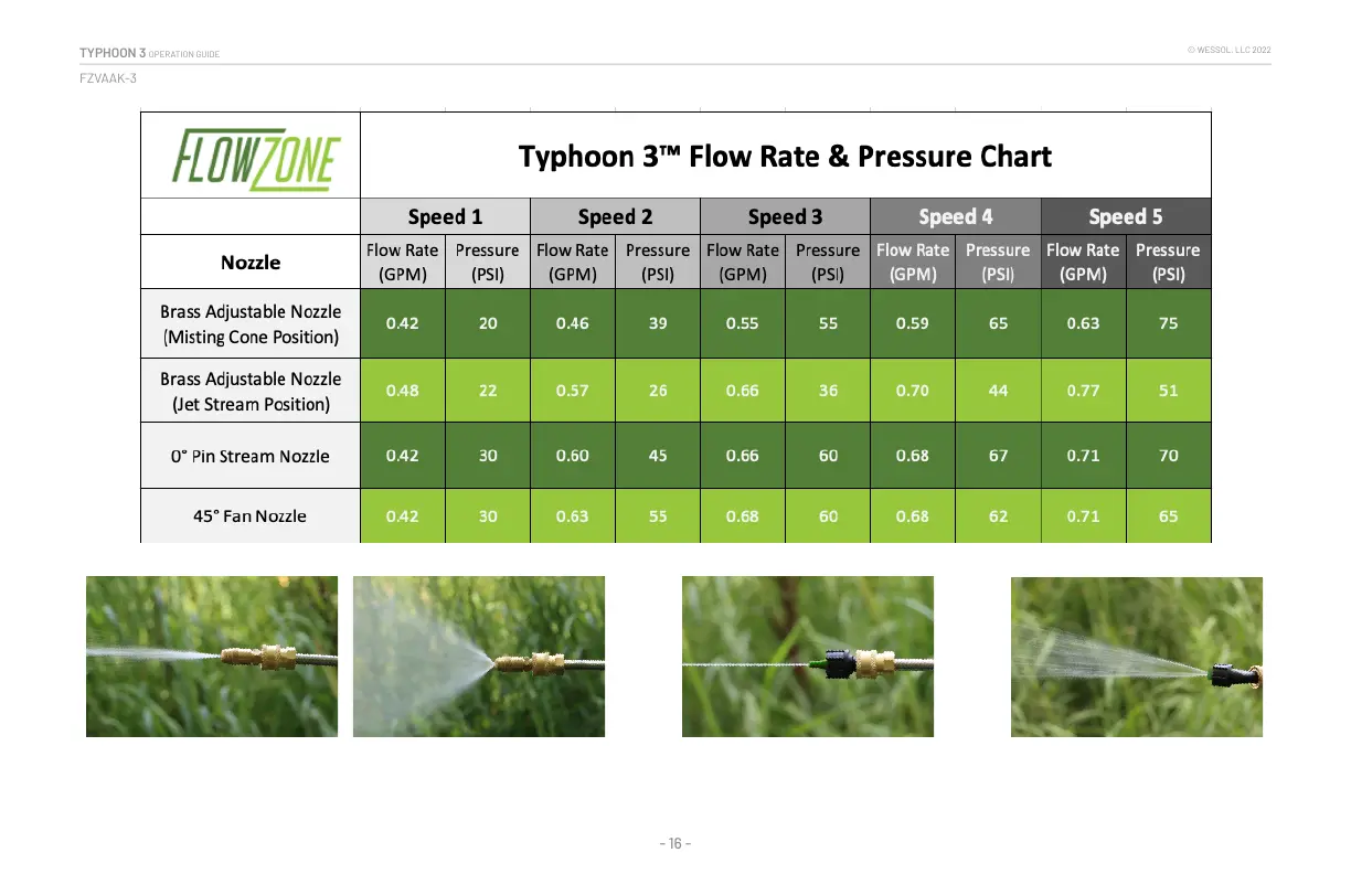 Flowzone TYPHOON 3 - Performance Information; Flow Rate and Pressure Settings Chart
