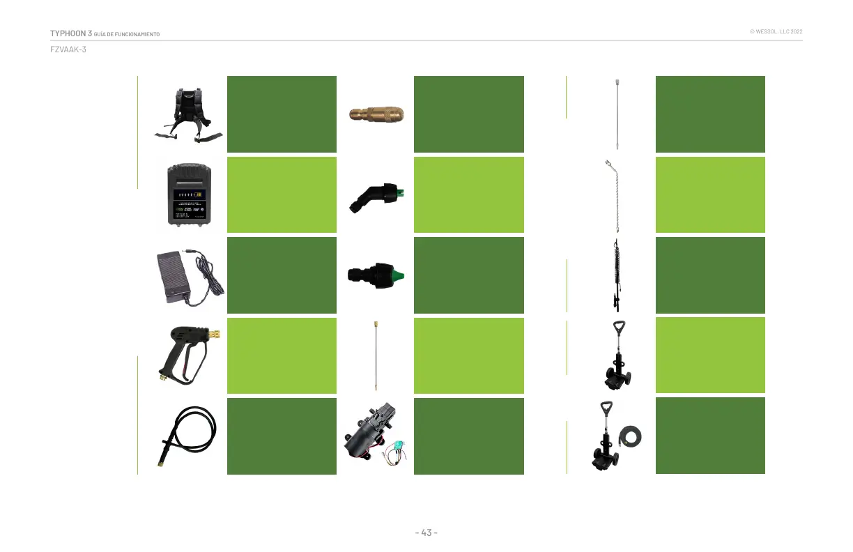 Los accesorios y las piezas de repuesto se pueden comprar en su distribuidor preferido o en línea en fzspray.com.