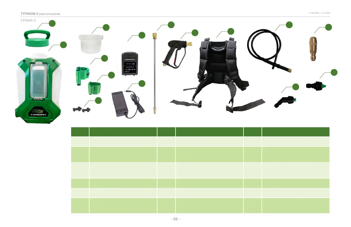 2 Réservoir de 15 litres 8 Chargeur de batterie