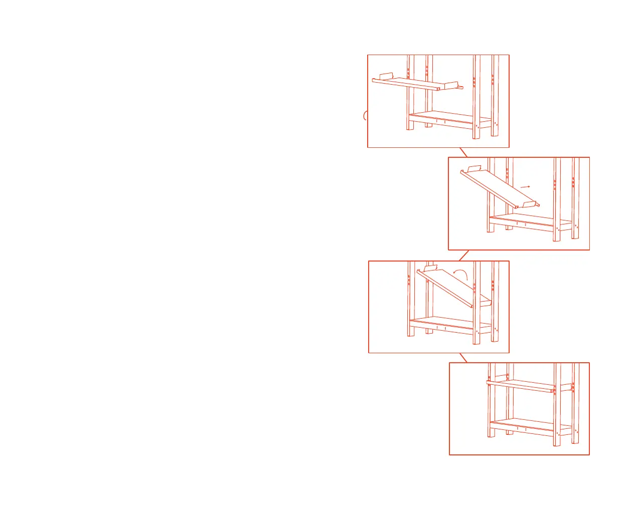 To attach the shelves, insert