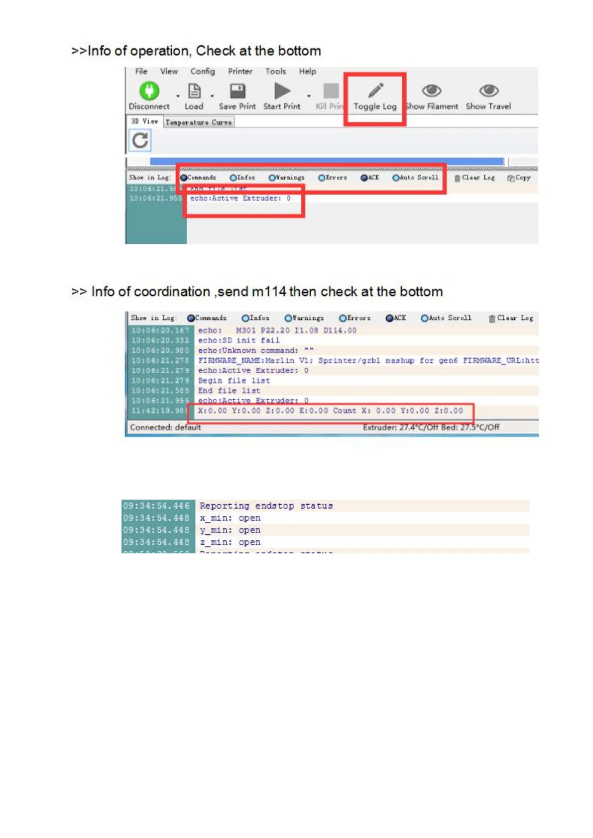 >>Info of limit switch, send m119 then check at the bottom