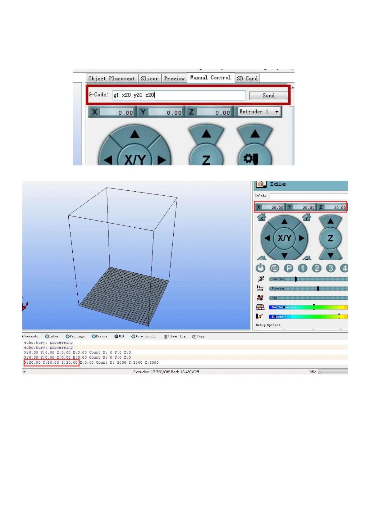 For example ,input g1 x20 y20 z20,the nozzle will go to coordinate x y z(20 20 20)