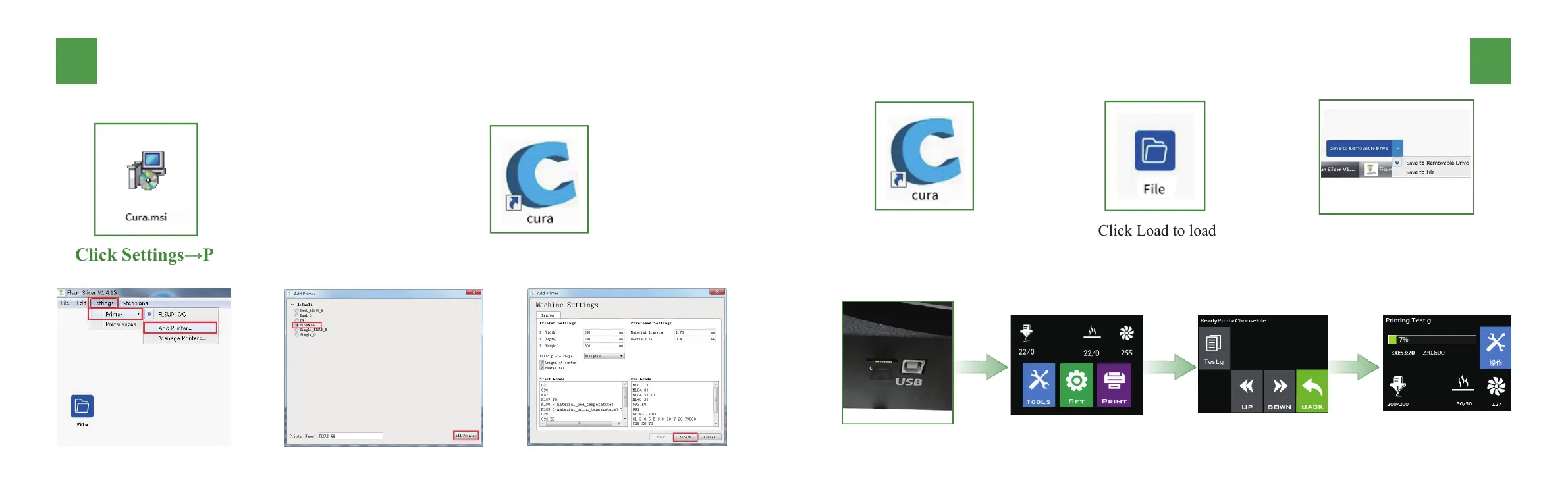 3.Click Settings→Printer→Add Printer→FLSUN QQ→Add Printer→Finish