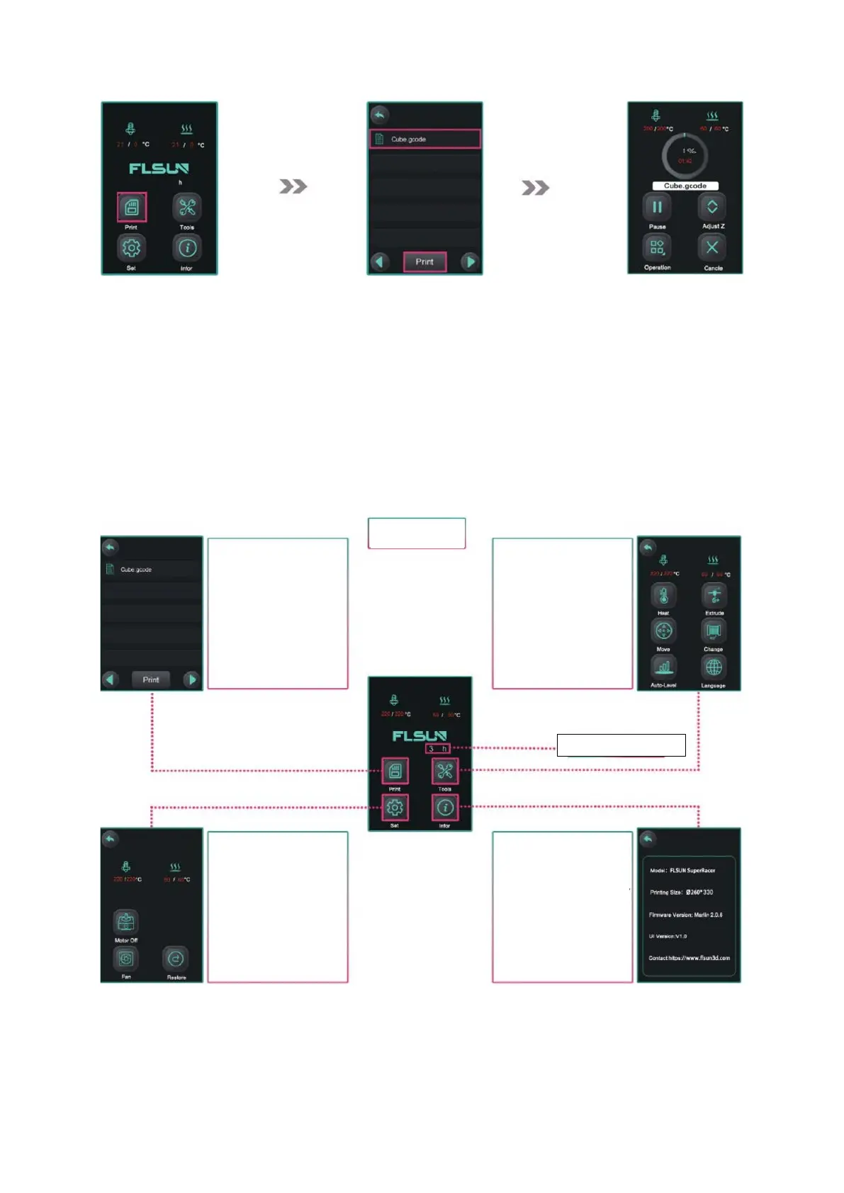 flsun SR - Érintőképernyős utasítások
