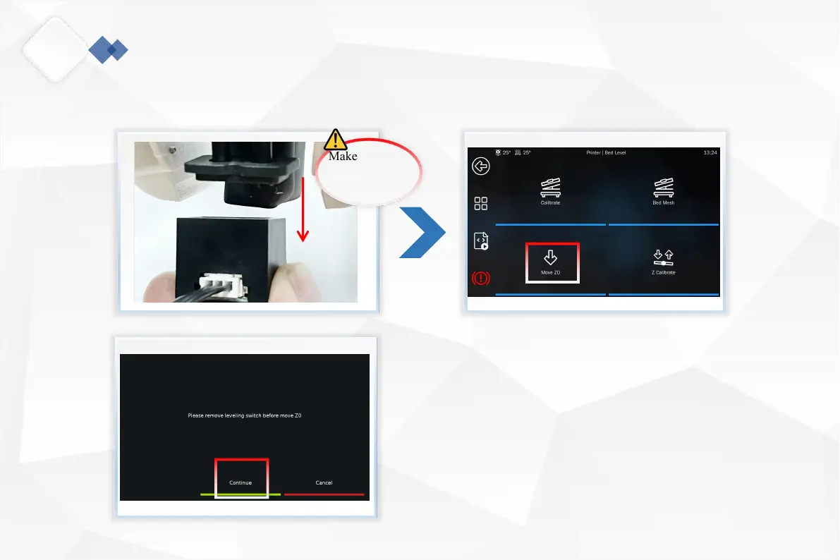 Level>Move Z0>Continue".