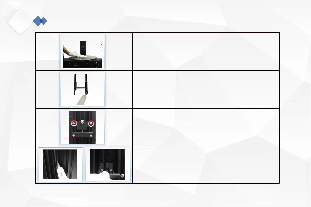 two screws marked 1 and 2 in the photo,and then turn the belt