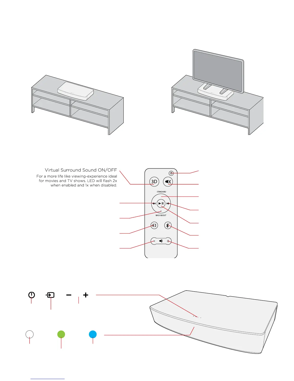 Fluance AB40 - Placing Your Soundbase System; Remote Control Functions; Sound Modes and Volume Control; Source and Bluetooth Selection