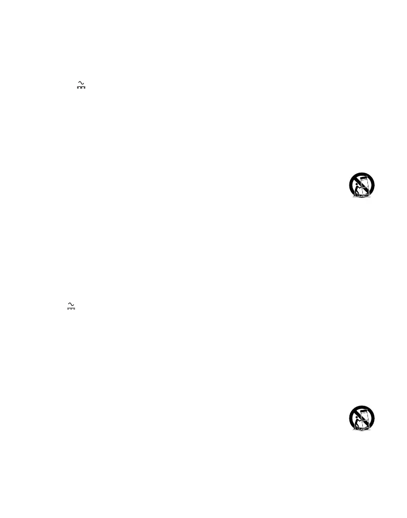 that objects lled with liquids, such as vases, shall not be placed on apparatus. Do not place or store the apparatus where it can fall or be pulled into a tub or sink. Do