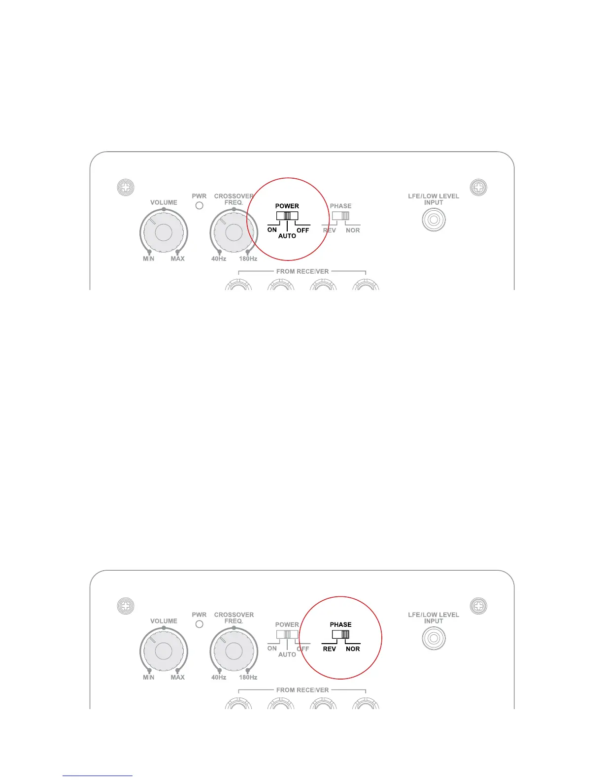 a signal from the home theater receiver. The auto setting turns the Subwoofer on when