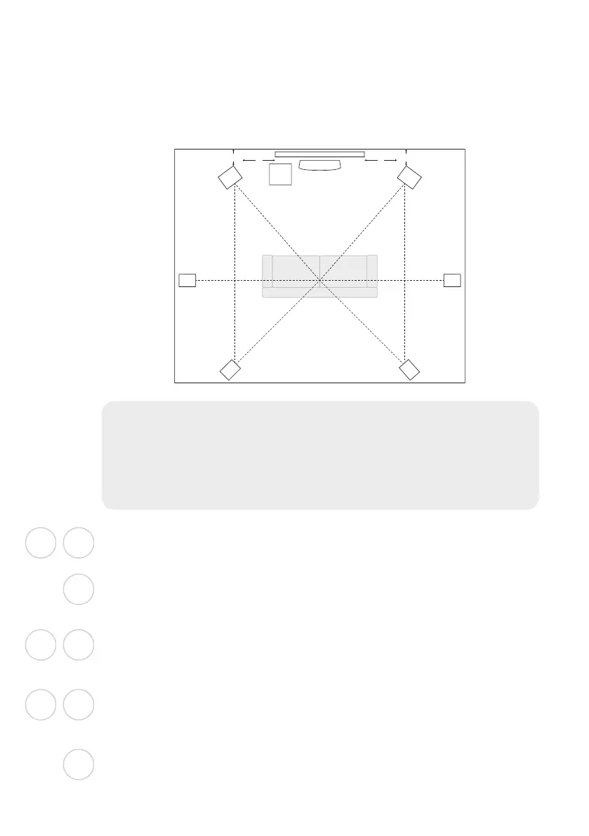 The proper placement will optimize surround sound and performance of
