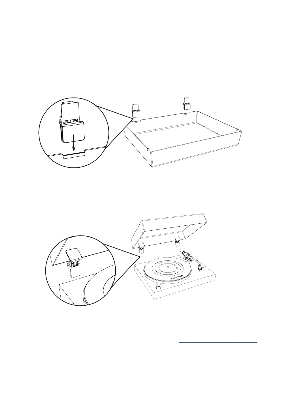 1. Install the hinges on the provided grooves located on the back of the dust cover.
